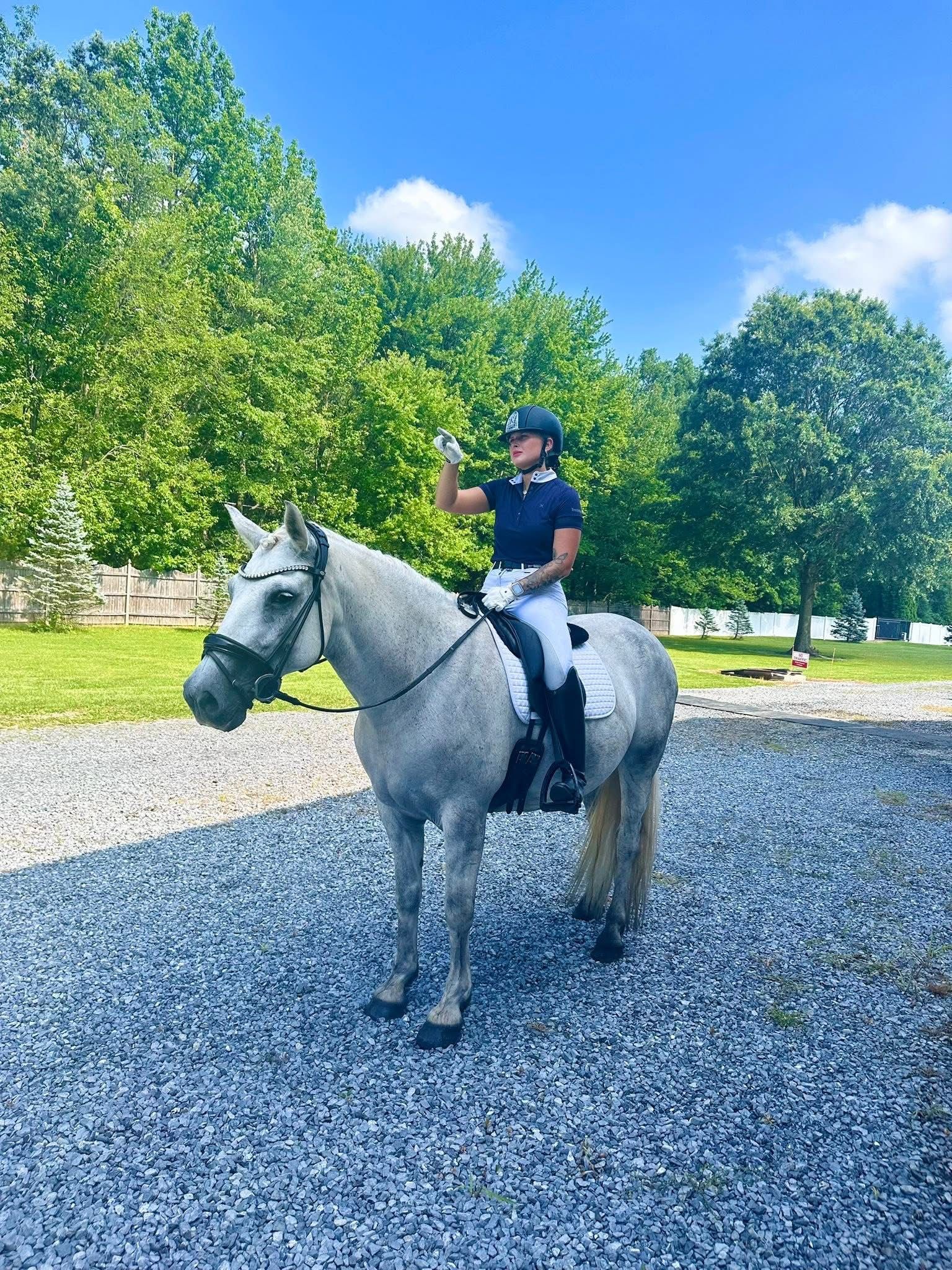 Trainer Katarina Leisinger brings over 12 years of experience in the equine industry, with a competitive background reaching up to the FEI levels — including being selected for the FEI Junior NAYC team. Growing up surrounded by horses, Katarina developed a versatile foundation across disciplines such as western, trail riding, jumping, lower-level eventing, and, of course, dressage.